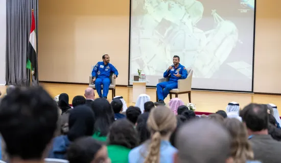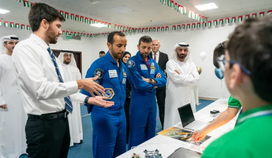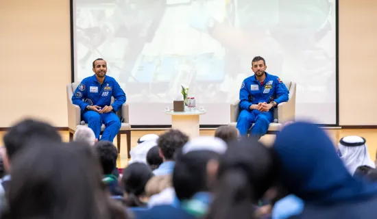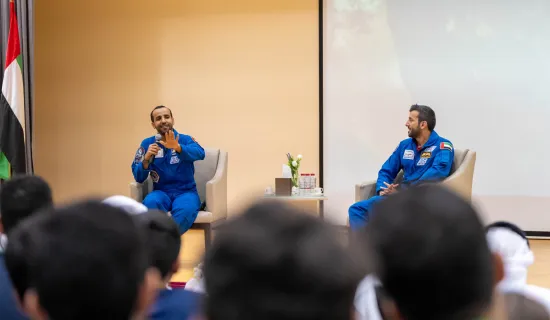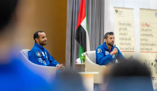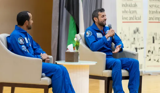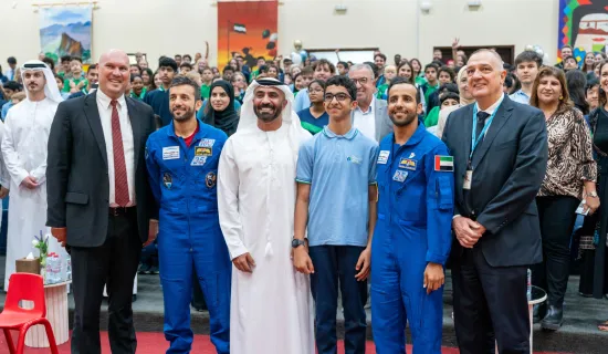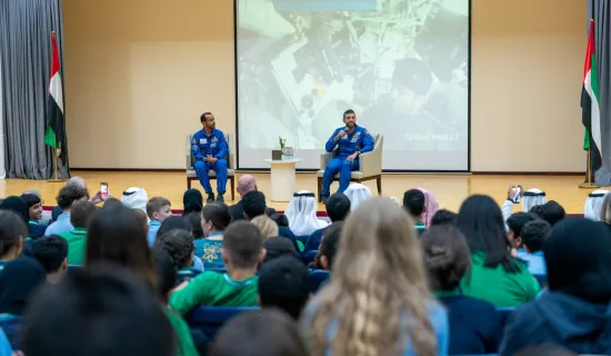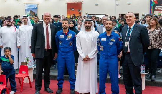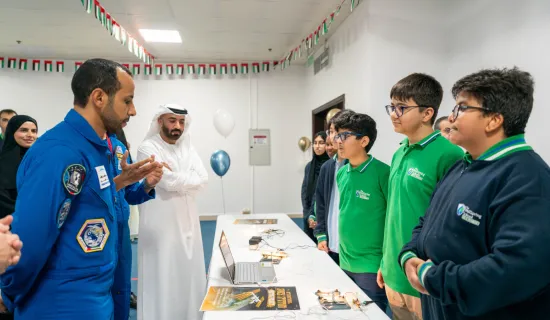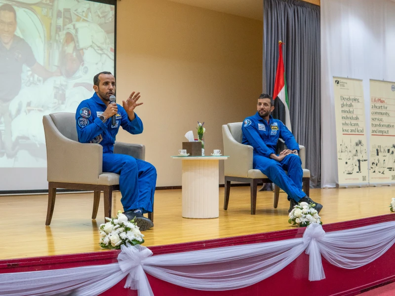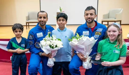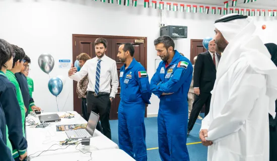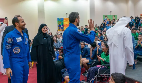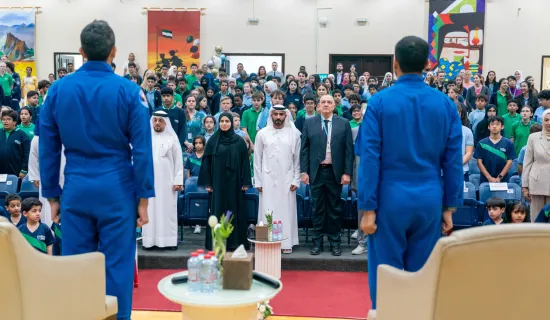 Today we had the privilege of hosting the UAE’s pioneering astronauts, H.E. Dr. Sultan Al Neyadi, Minister of State for Youth Affairs, and Hazzaa Al Mansoori, who visited WellSpring to share their experiences with our students and answer questions. In attendance were Sheikh Abdullah bin Humaid bin Abdullah Al Qasimi, Chairman of the Ras Al Khaimah Ruler’s Office, and several government officials. We cherish this amazing opportunity for our students.
