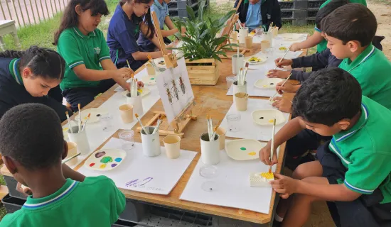 Our elementary classes thoroughly enjoyed their outdoor classroom learning about bees. Ms. Emma shared her vast knowledge and experience of bees and beekeeping with our young students. In the interactive lesson, each student identified their own bee and creatively decorated their piece of hive.