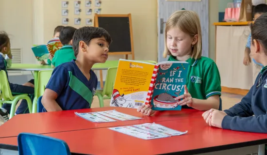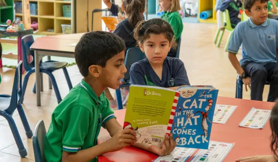 Grade 2 visited the KG1 classes and paired up to read them their favorite Dr. Seuss books. A great experience for both grades! 📖📚