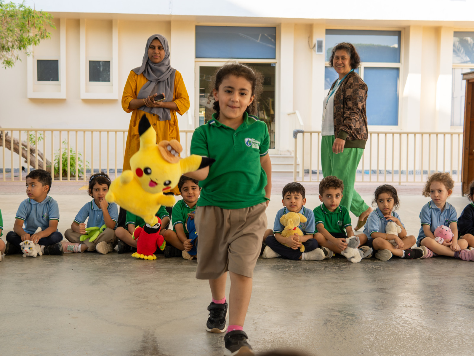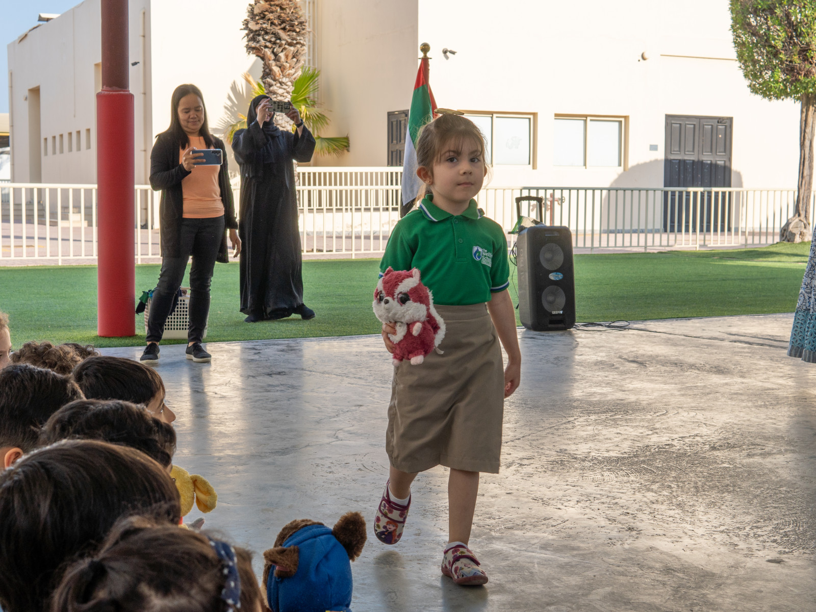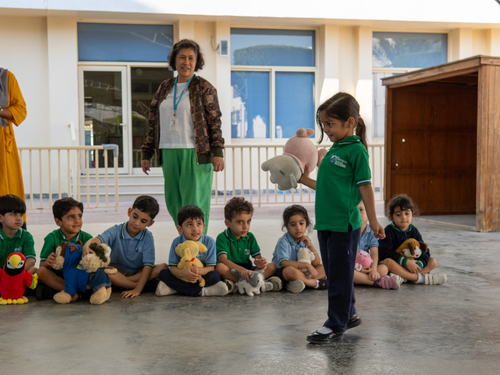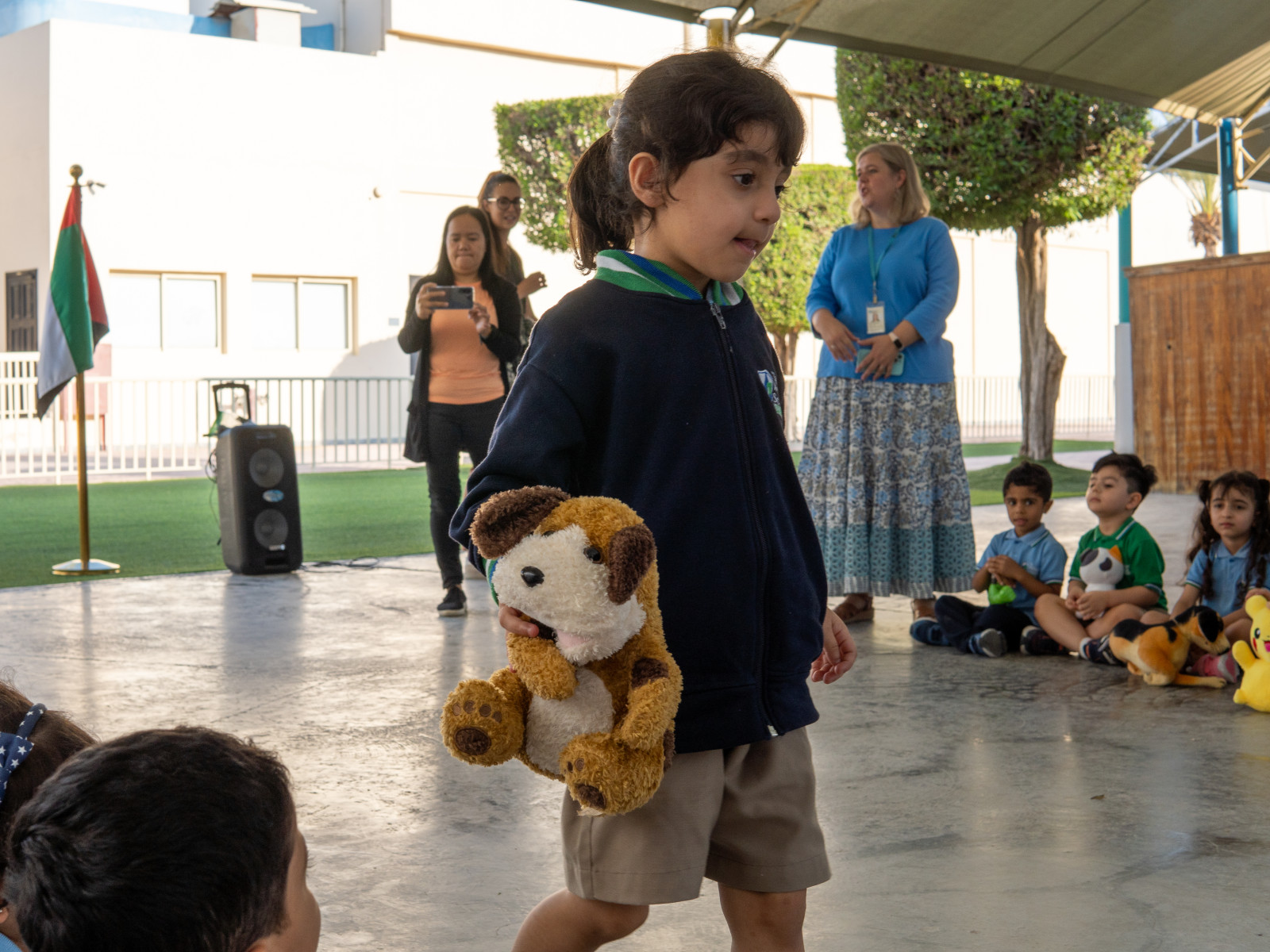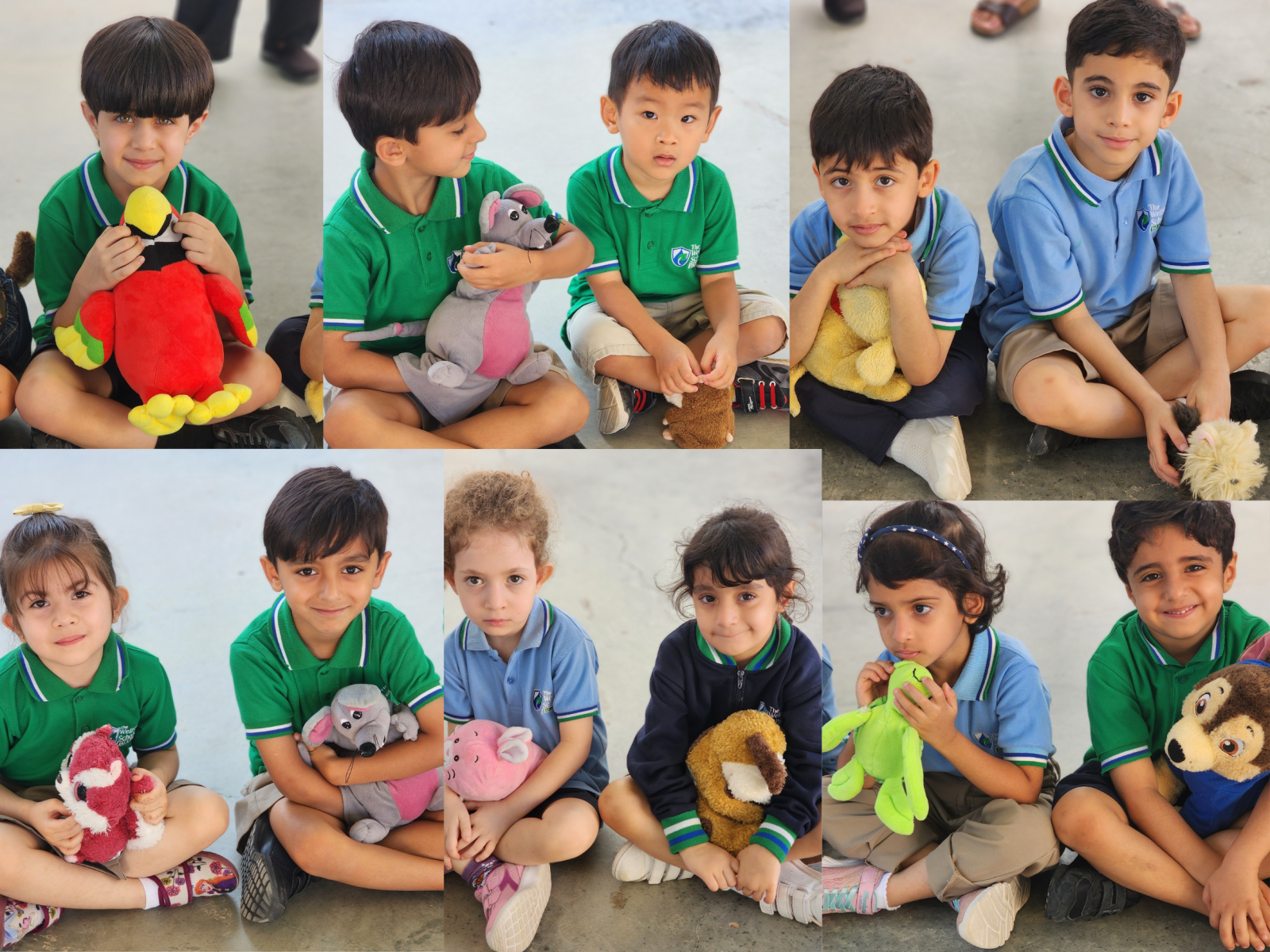 While learning about pets, our KG1 classes brought their favorite 'pets' to school - mostly stuffed animals and even a toy Hulk. They each had a turn to show off their 'pet' by walking it in a parade past their friends. This was also a fun way to build courage and confidence in the young students.