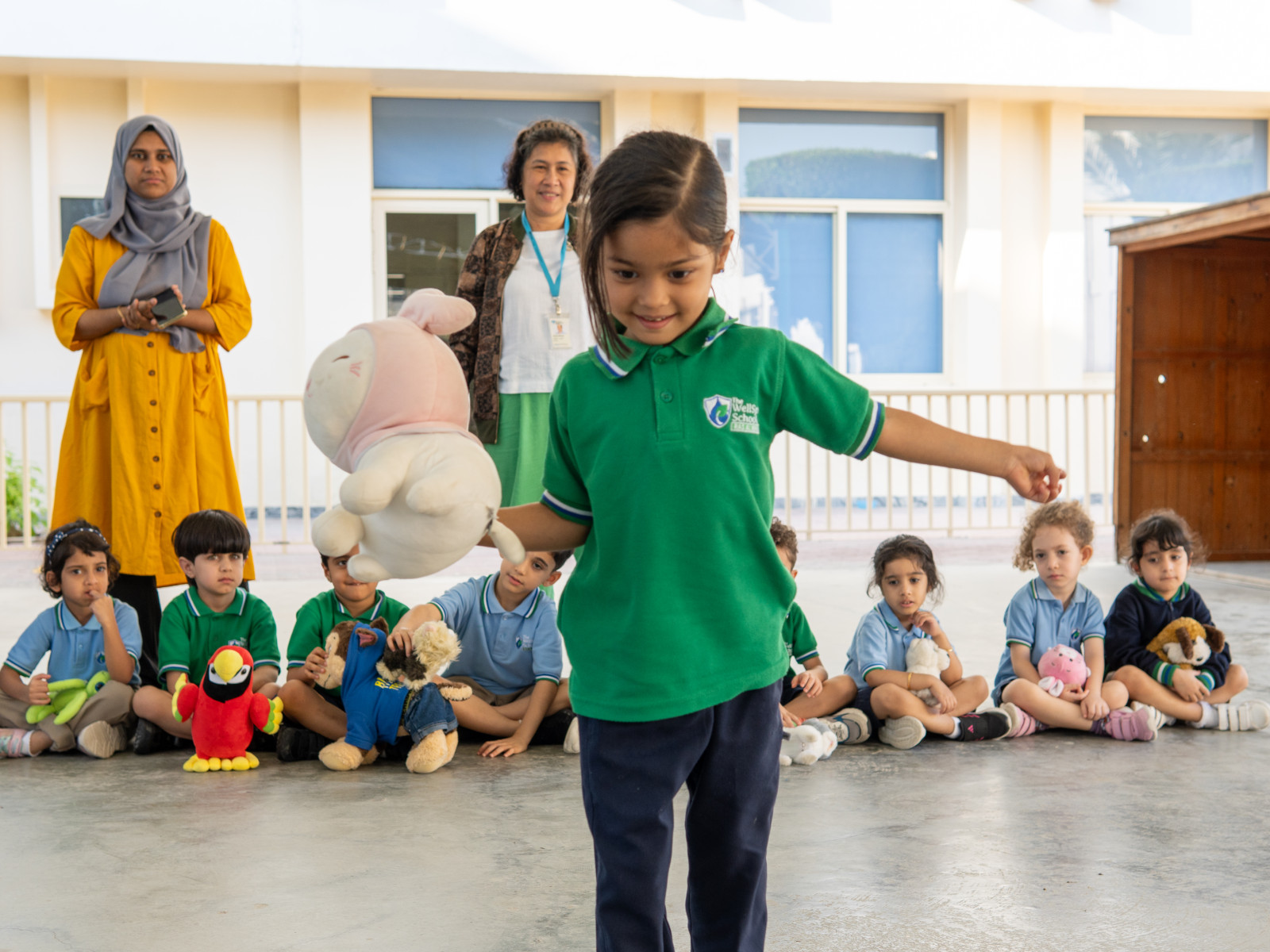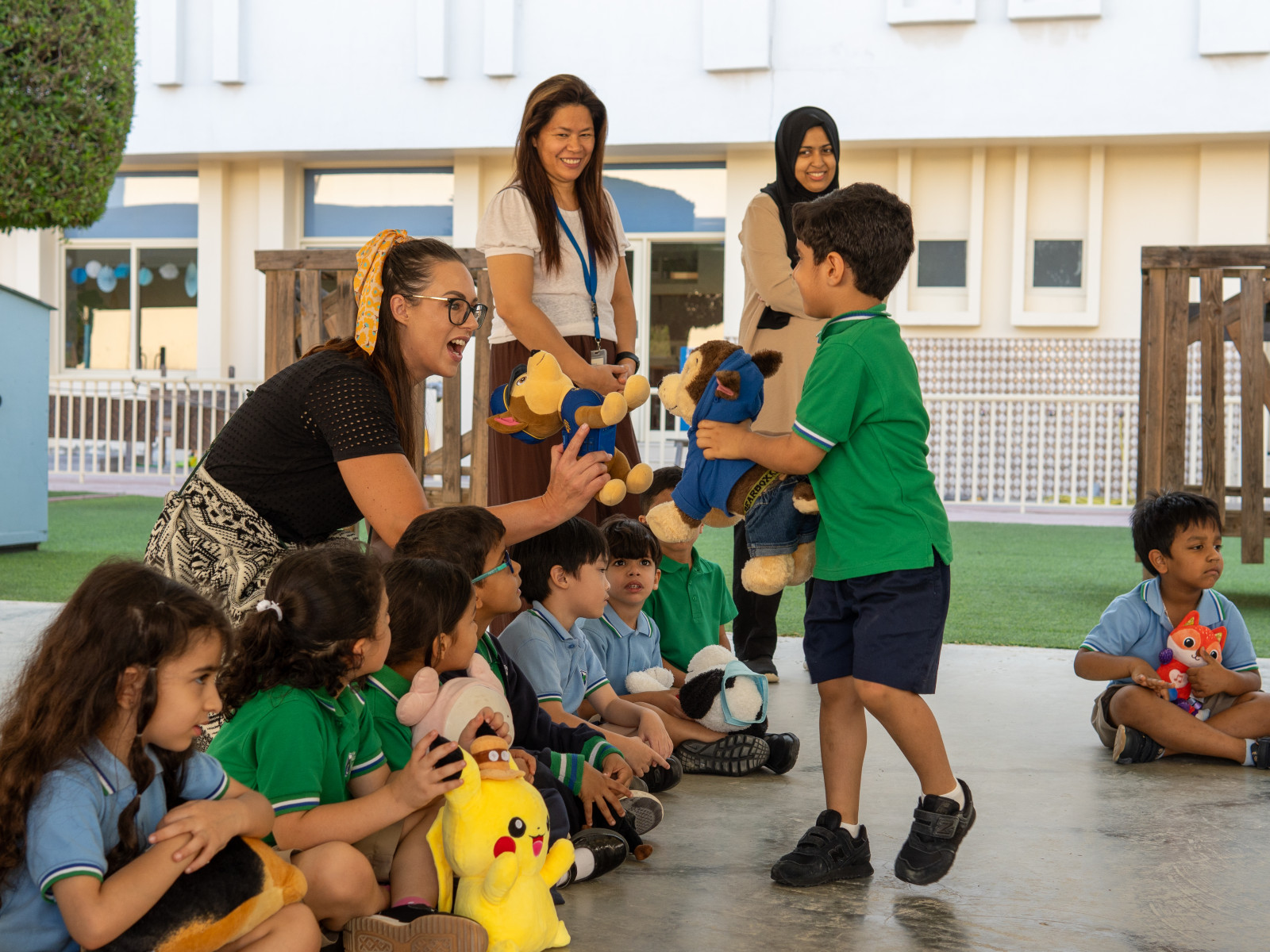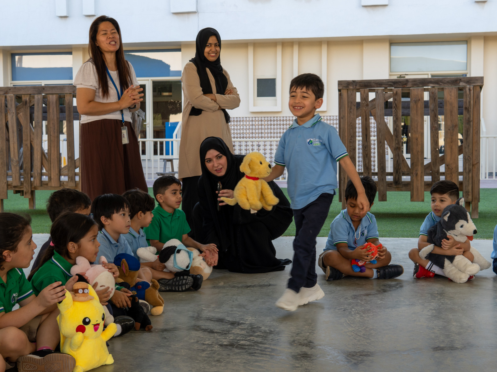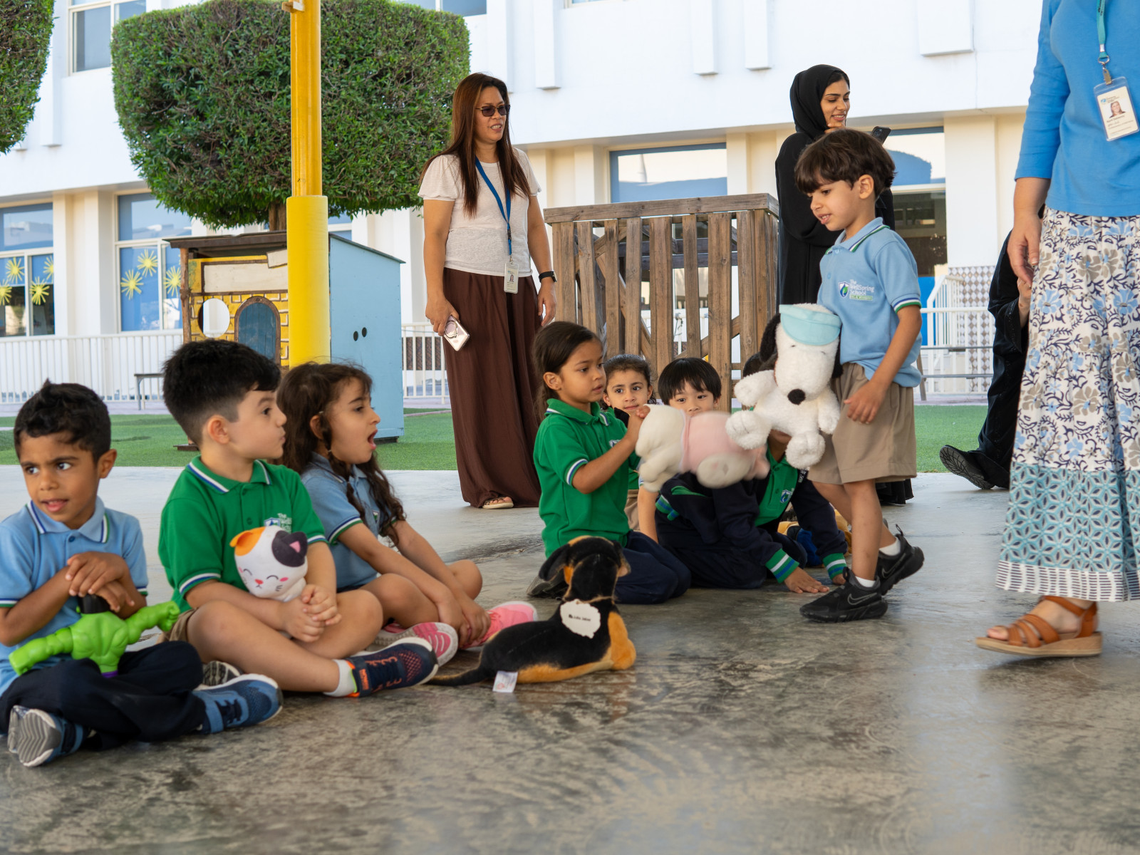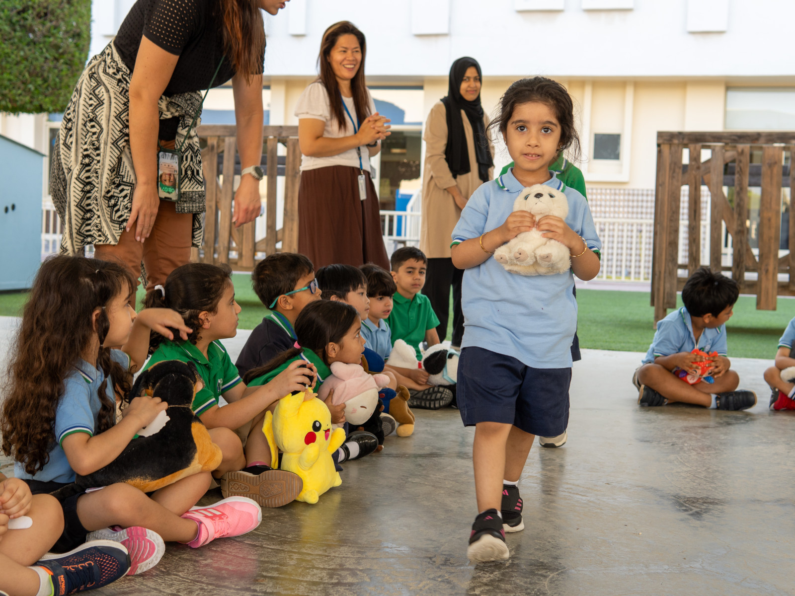 While learning about pets, our KG1 classes brought their favorite 'pets' to school - mostly stuffed animals and even a toy Hulk. They each had a turn to show off their 'pet' by walking it in a parade past their friends. This was also a fun way to build courage and confidence in the young students.