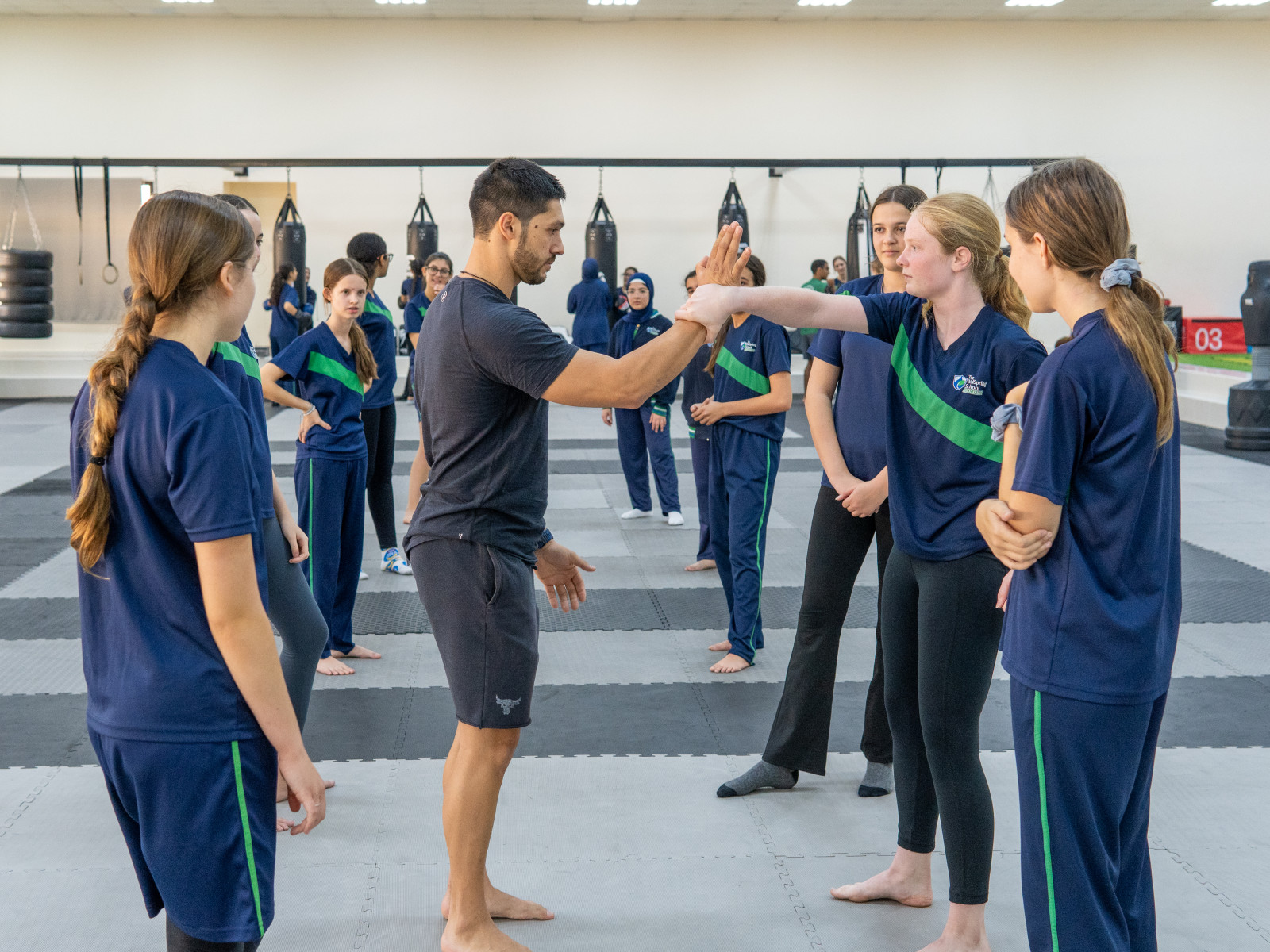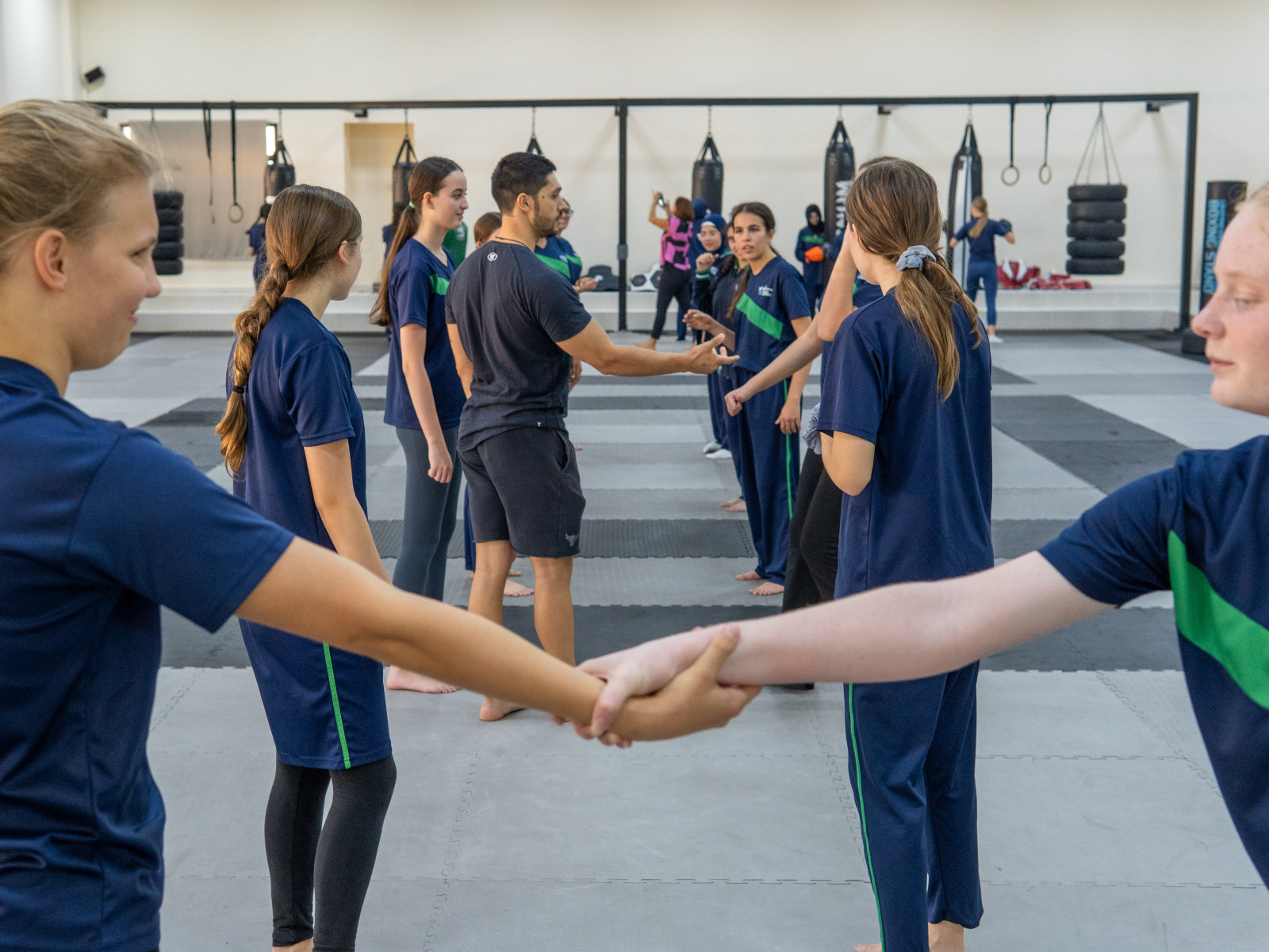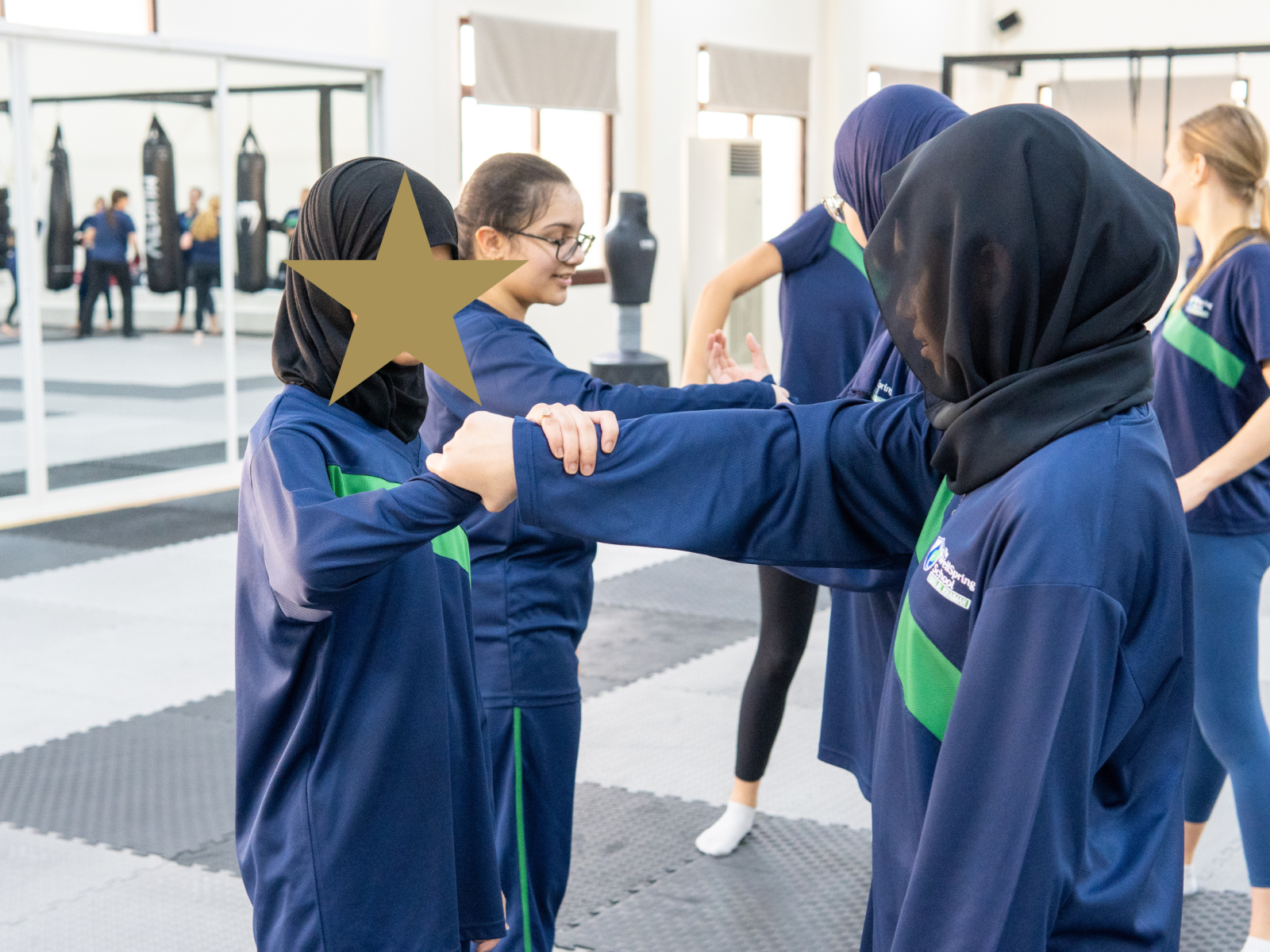 Our grade 9 and 10 girls attended a self-defense class at @base.rak. After a vigorous warm up, they were introduced to some real-life scenarios and effective countermeasures.