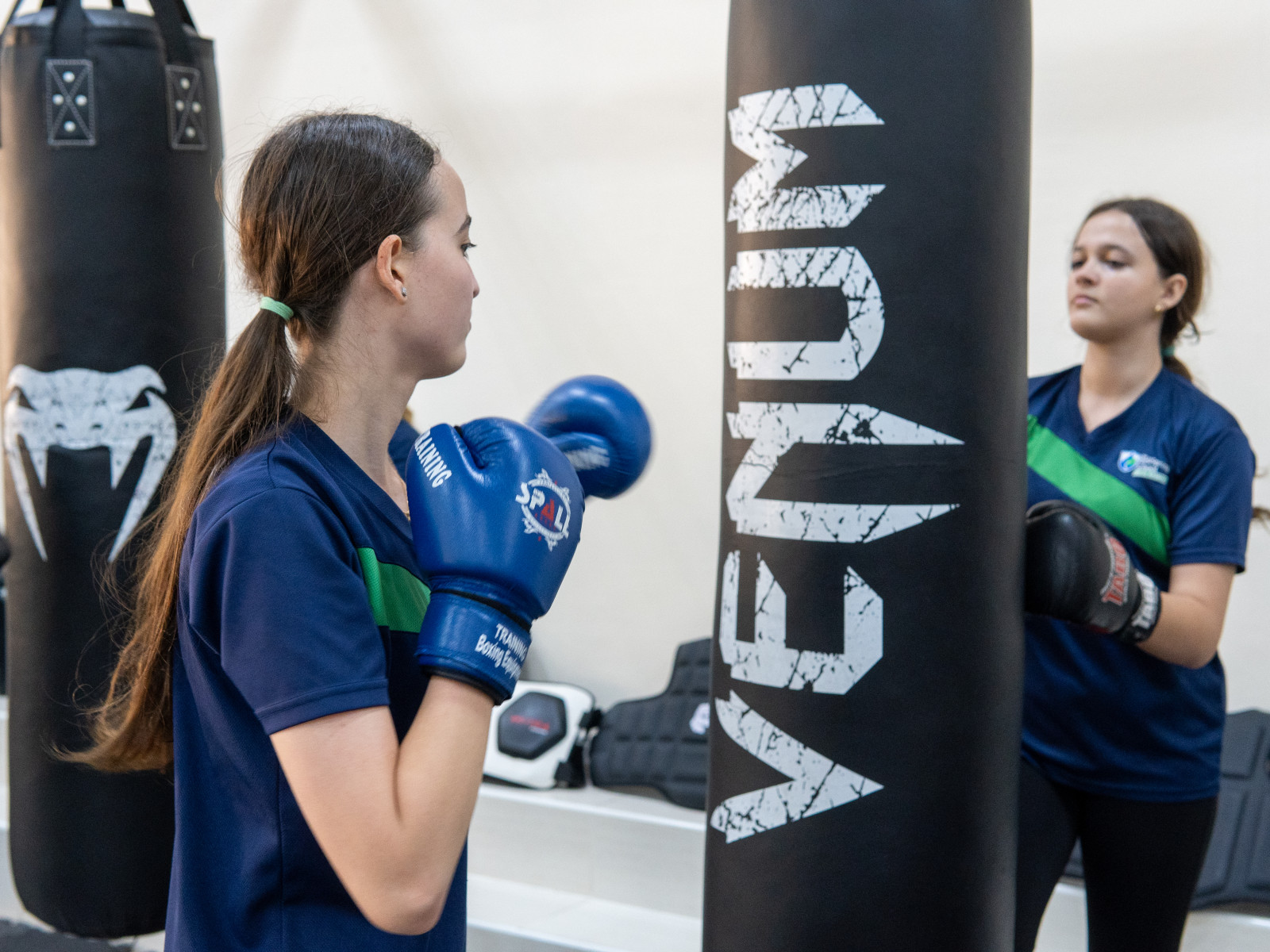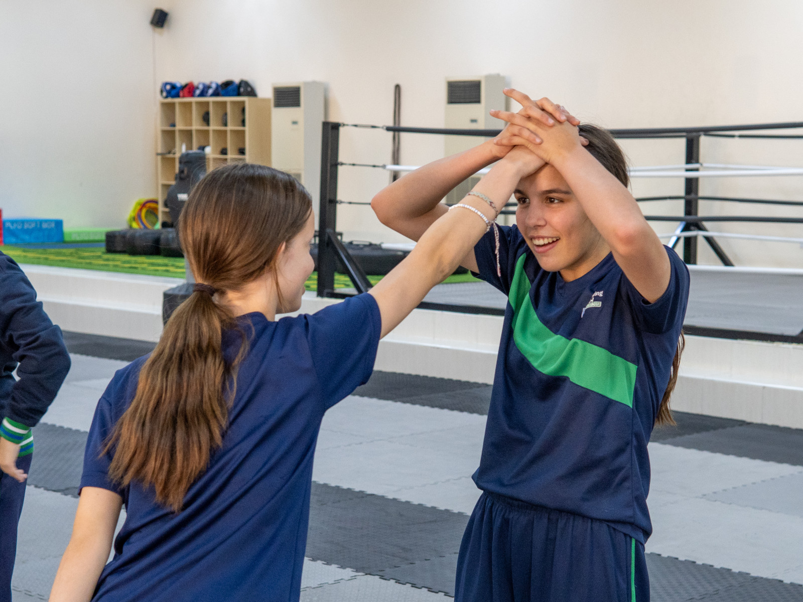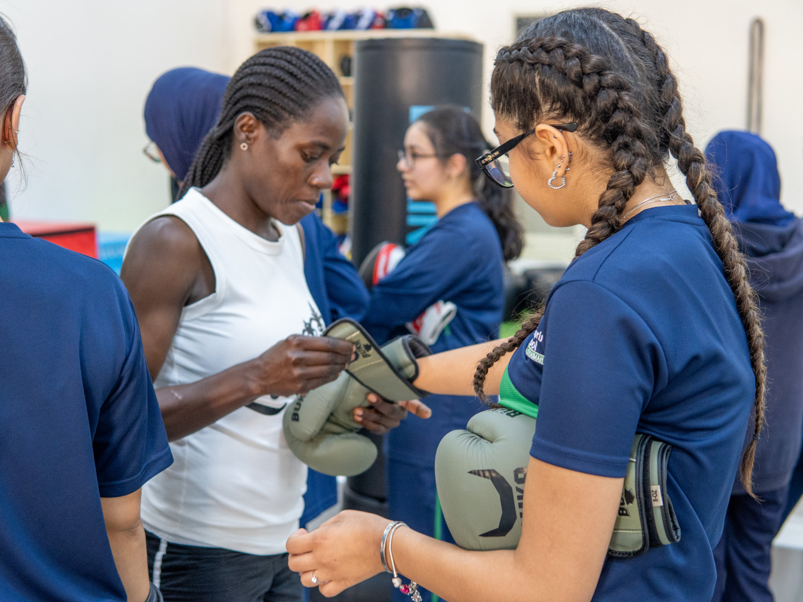 The girls were also taught basic boxing techniques using gloves and punching bags. 🥊
