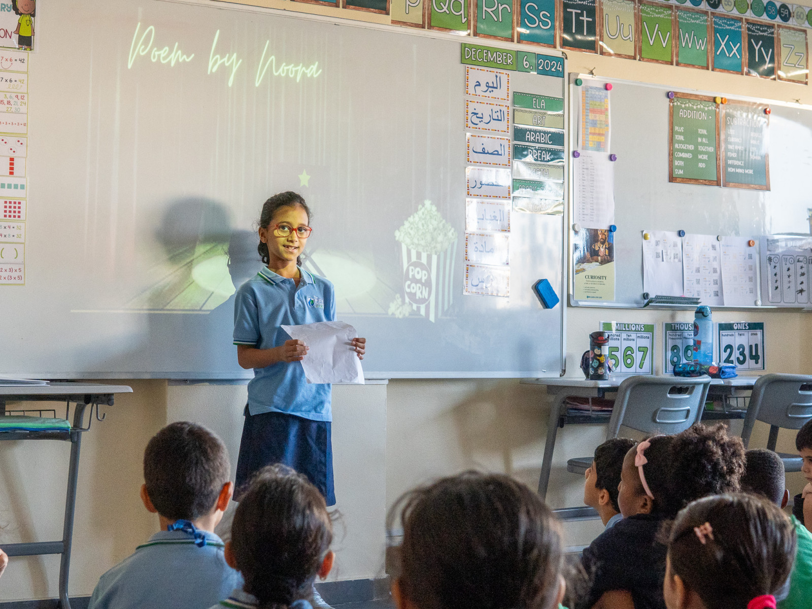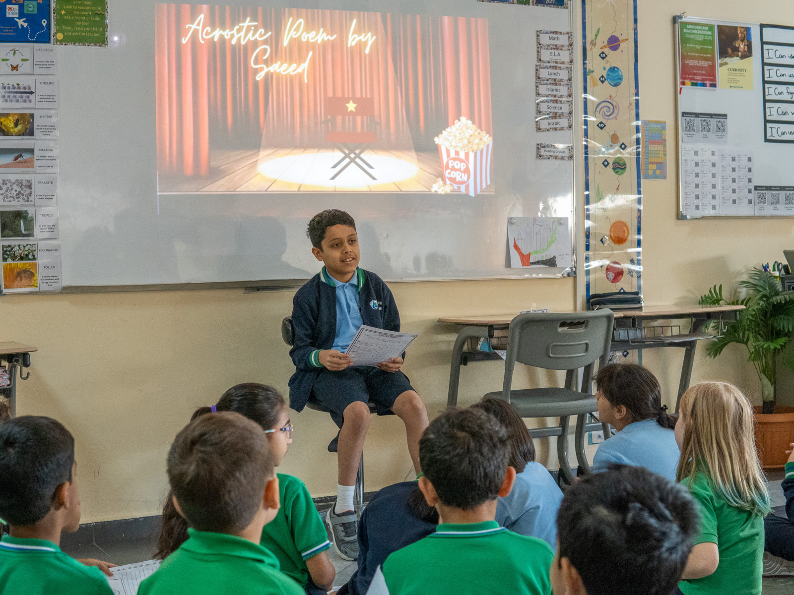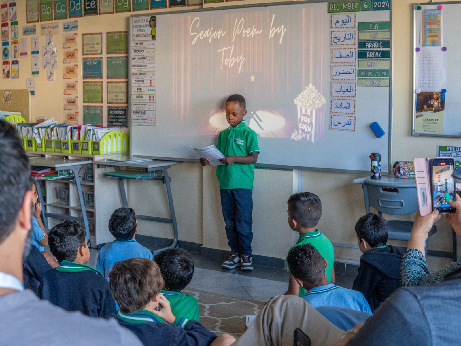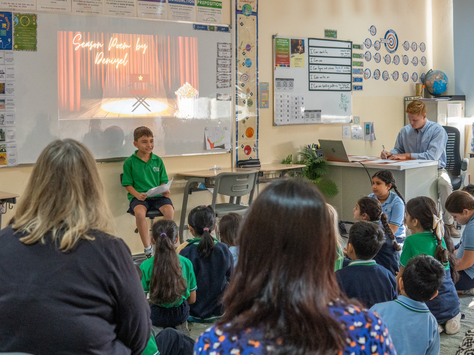 Our 3rd graders composed their own poems - a choice of a season, acrostic, alliteration or autobiography poem. They worked on their poems during English Language Arts, and then presented them in front of parents and classmates. Well done 3rd grade!