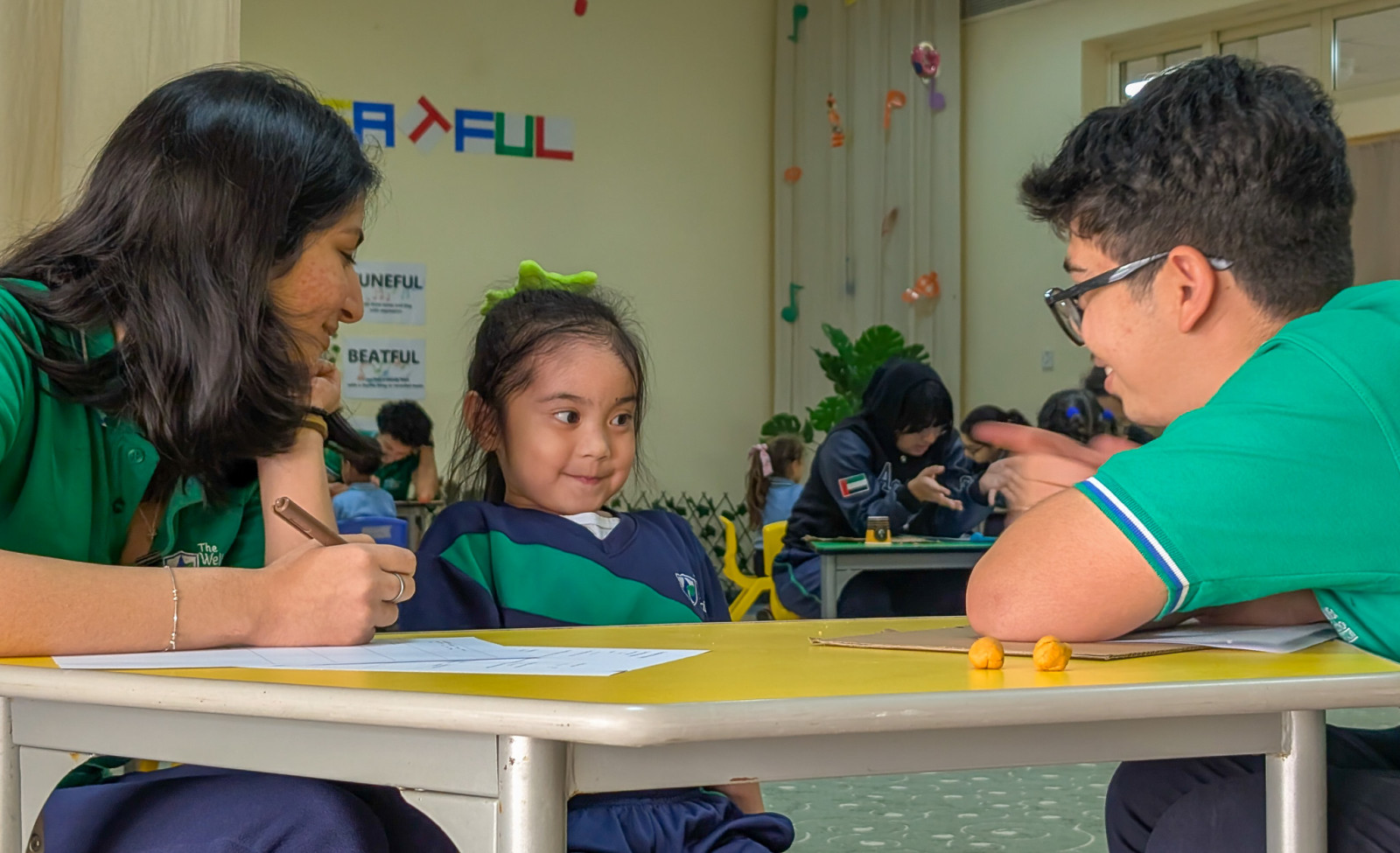 The high school Psychology students spent an afternoon with KG2 and Grade 5 students conducting activities that helped the Psychology class understand which stage of psychological development the young children were at.
